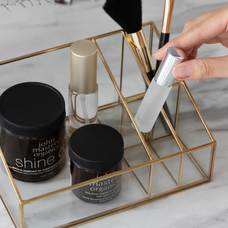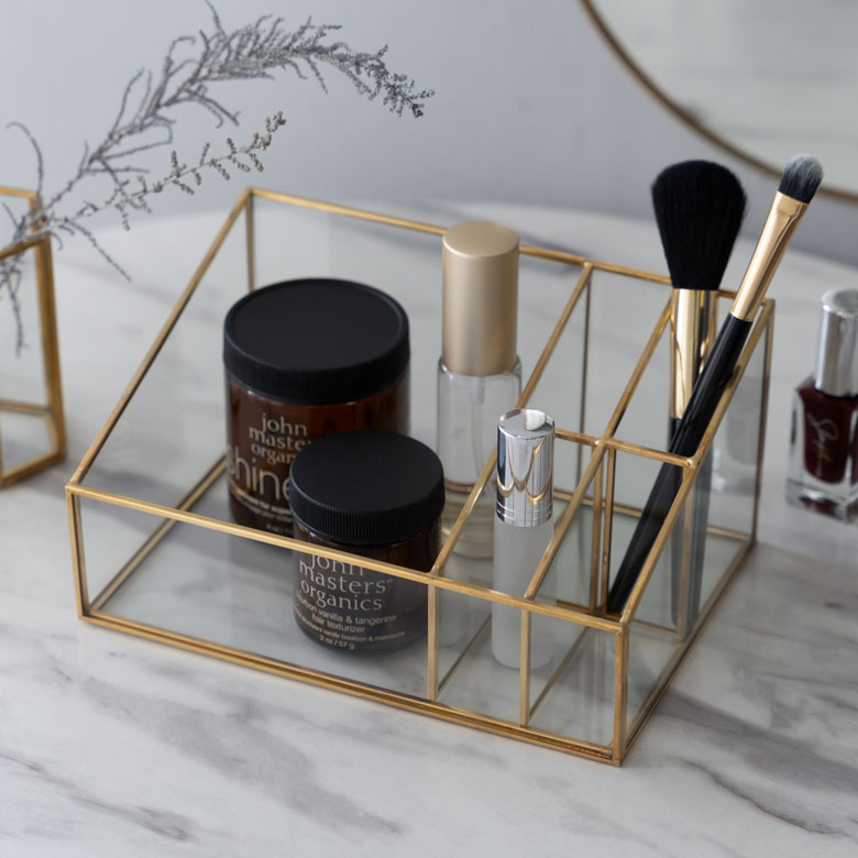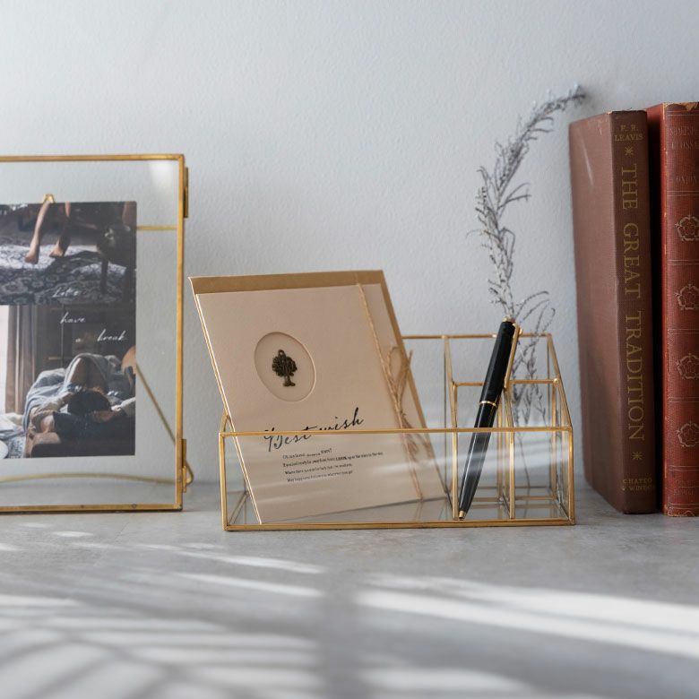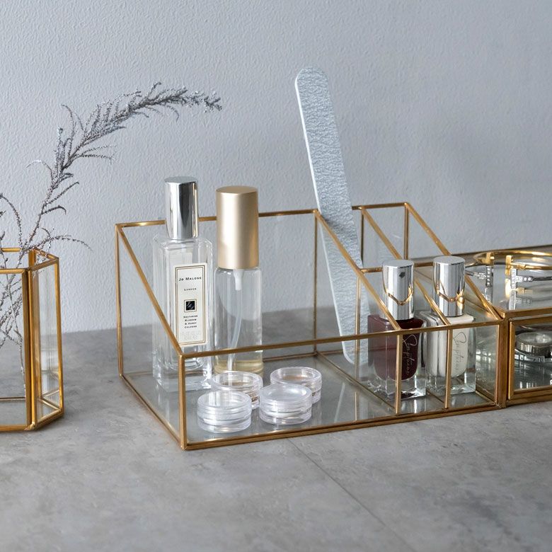 他の画像を見る 小物入れ 小物収納 立てる収納 クリア 透明 ゴールド コスメ ブラシスタンド コスメ収納 ガラスと真鍮 5分割 約 W 18cm D 13cm H 9cm ガラス [67070]【 スタンド メイクブラシ 収納 ガラスケース アクセサリー収納 ガラスボックス ガラス小物入れ アンティーク 風 ディスプレイ おしゃれ 北欧 韓国 韓国インテリア 西海岸 】 販売価格 ¥ 2,480 税込 カートに入れる お気に入りに登録する