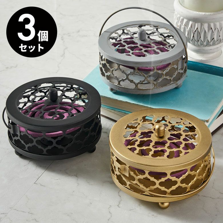 他の画像を見る 蚊取り線香 ケース ポット 持ち運び 蚊取り線香台 ランタン 室外 蚊取り線香入れ 3個セット 蓋付き 円形 モロッカン柄 スチール製 アンティークゴールド グレー ブラック 径約17cm Liege リージュ 蚊取り線香ホルダー 蚊遣り 蚊取り線香 かやり 蚊やり ハンドメイド おしゃれ 雑貨 蚊 モダン リゾート ピクニック アウトドア [669] 販売価格 ¥ 5,980 税込 カートに入れる お気に入りに登録する