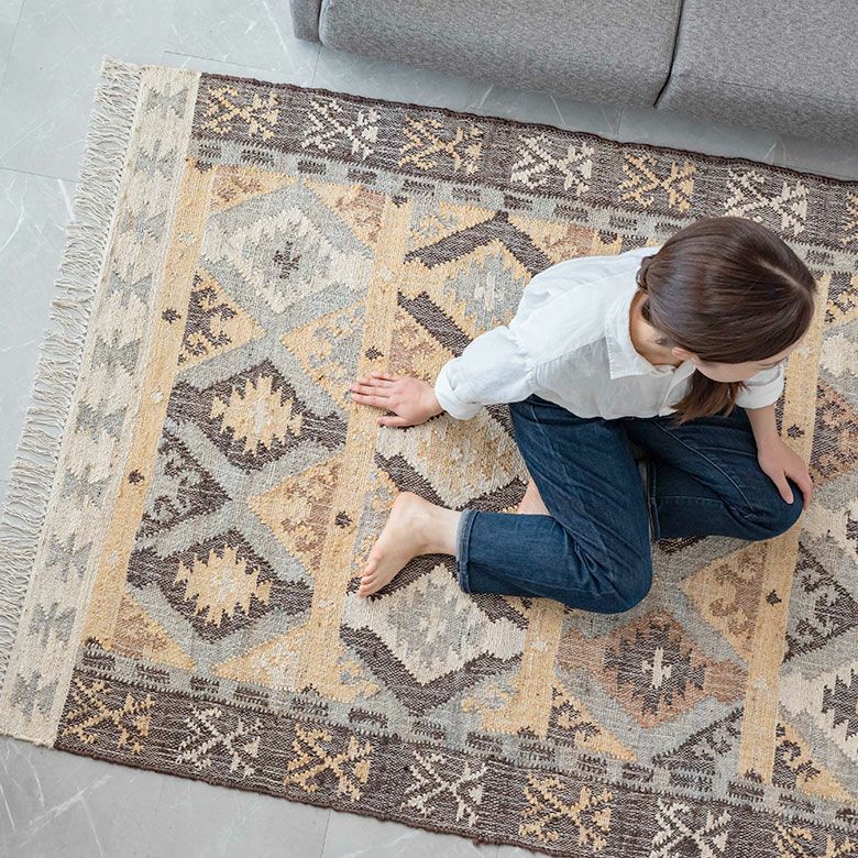 他の画像を見る 手織り リビング インド BOHO ボーホー 絨毯 敷物 マット ラグ ラグマット 約 130×190 cm 長方形 ジュート 麻 コットン 綿 ナチュラル スモーキー [34449-ylgy]【 デザイン カーペット 天然素材 ハンドメイド おしゃれ 北欧 オールシーズン 春 夏 秋 冬 リゾート コースタル 民族柄 風 アジアン エスニック 男前 西海岸風 】 販売価格 ¥ 23,140 税込 詳細を見る お気に入りに登録する