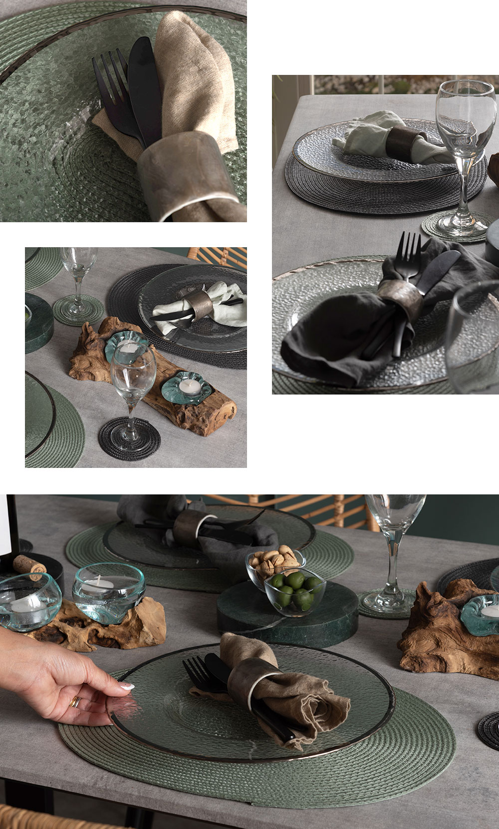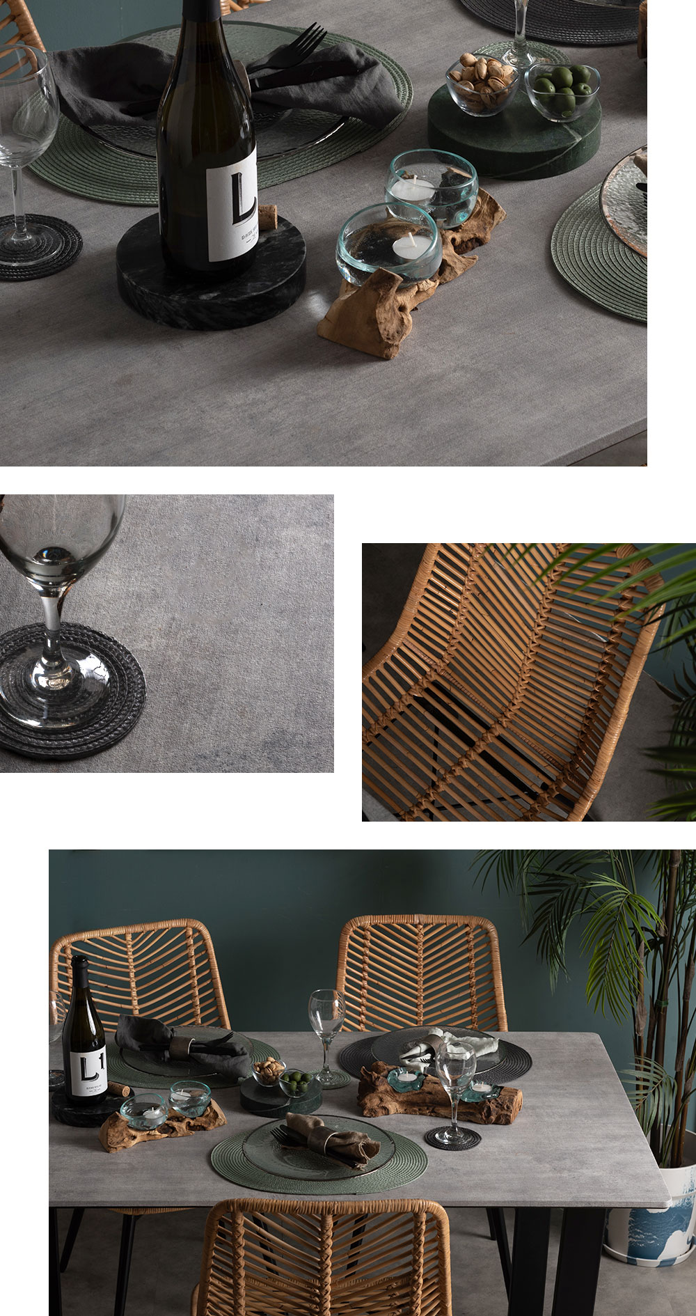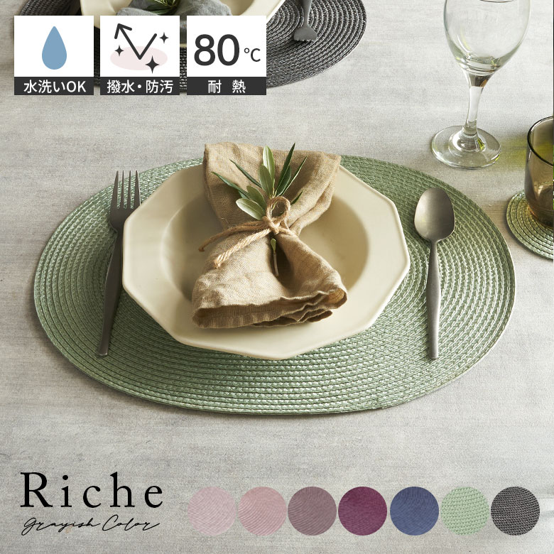 Richeのコースターとオーバルプレースマットが全体を上質にまとめ、